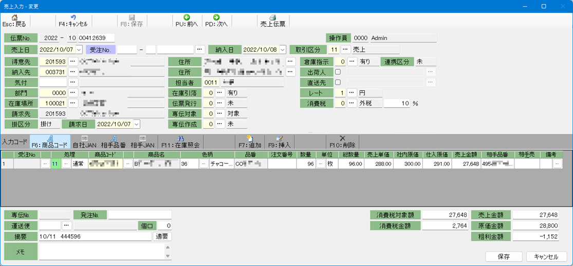 【売上入力画面】