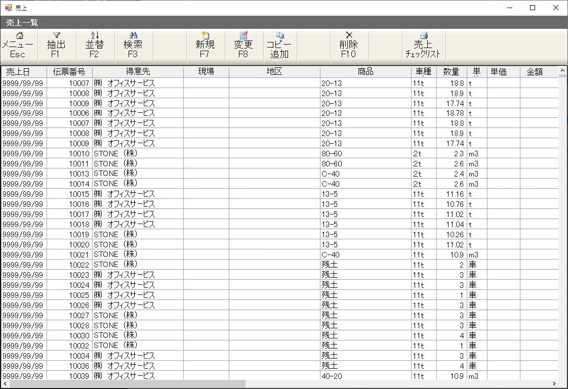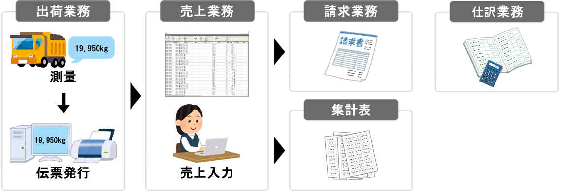 トラックスケールとの接続や、砕石業固有の出荷や売上入力にも対応しており、多様な請求集計・帳票出力が可能です。