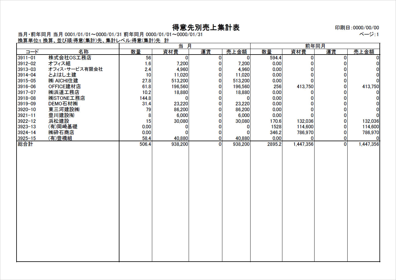 トラックスケールとの接続や、砕石業固有の出荷や売上入力にも対応しており、多様な請求集計・帳票出力が可能です。